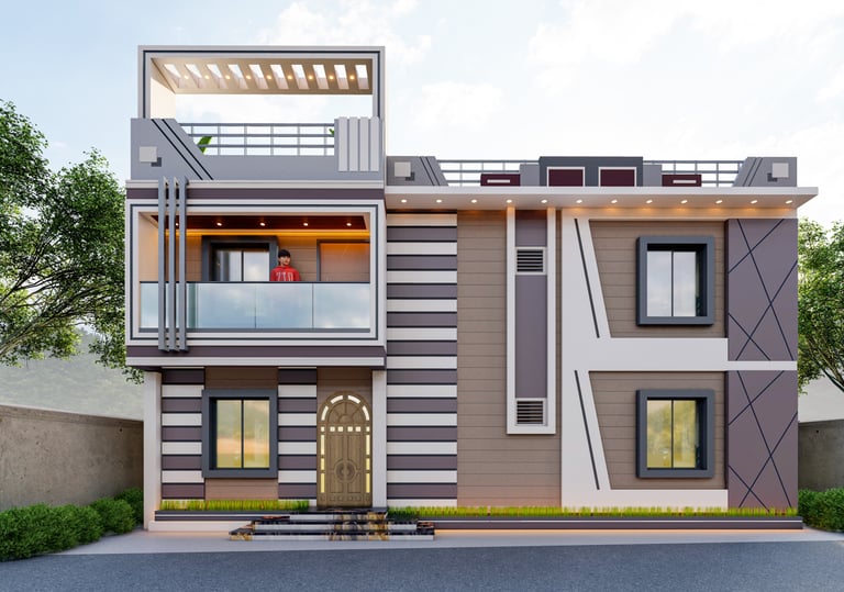 Get stunning 3D elevation designs that enhance the beauty of your home with a modern and elegant touch. Our customized designs cater to both simplex and duplex houses, ensuring a perfect blend of style and functionality. With precise planning, we create detailed layouts that include the ideal placement of windows, balconies, and terraces. Experience high-quality architectural solutions at affordable prices, bringing your dream home to life. Stay ahead with the latest trends and innovative exterior designs crafted by experts.