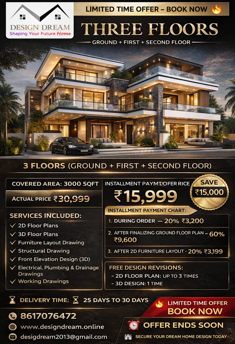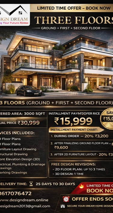 At Design Dream, we bring your architectural visions to life with precision, creativity, and functionality. Whether you're building your dream home or designing a modern commercial space, we offer a complete range of professional design solutions: